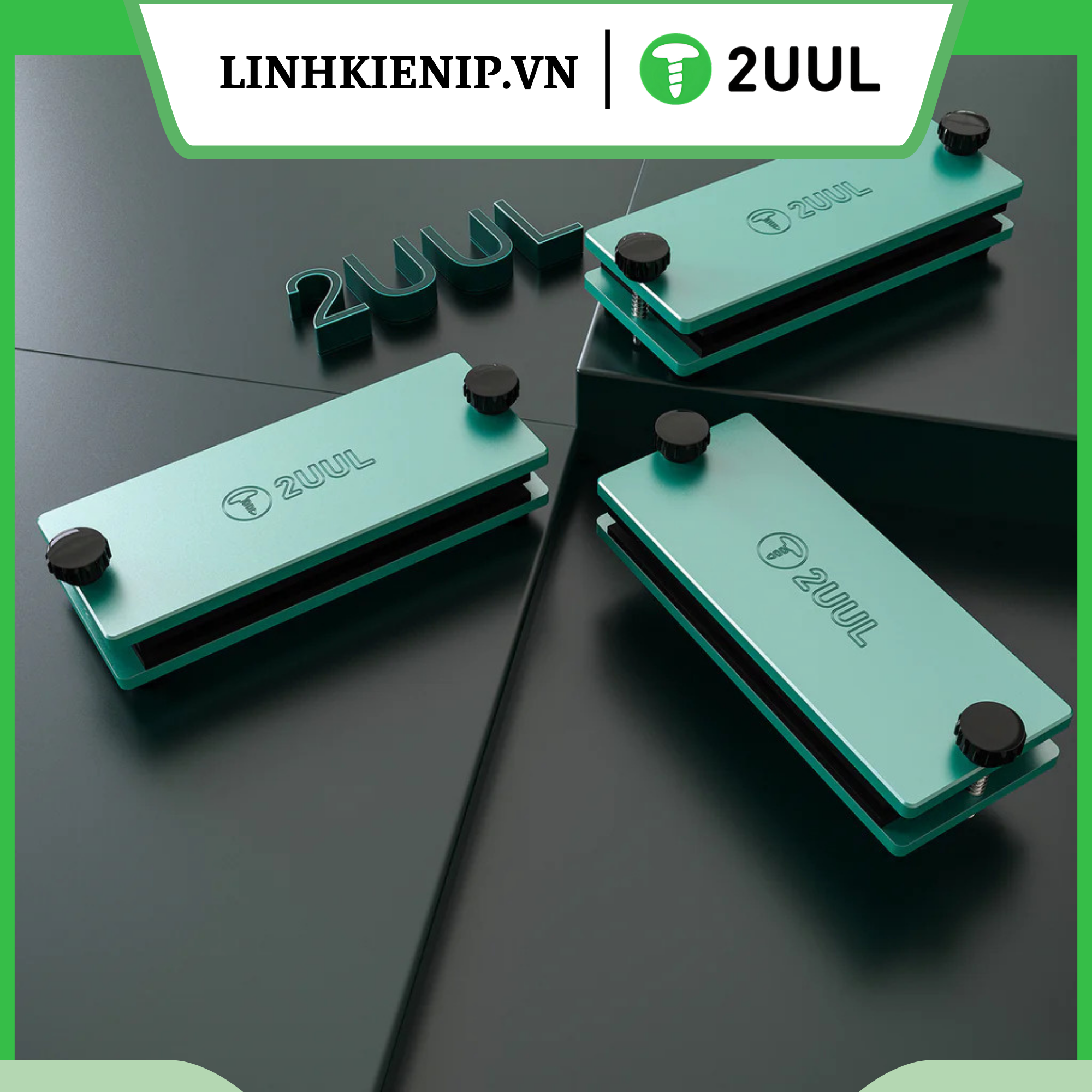 Kẹp ép kính iPhone 2UUL – Dụng cụ cố định màn hình khi ép kính. Chất liệu nhôm CNC cao cấp, ép đều lực, không cong main, không nứt kính. Mua chính hãng tại 2UUL.vn.